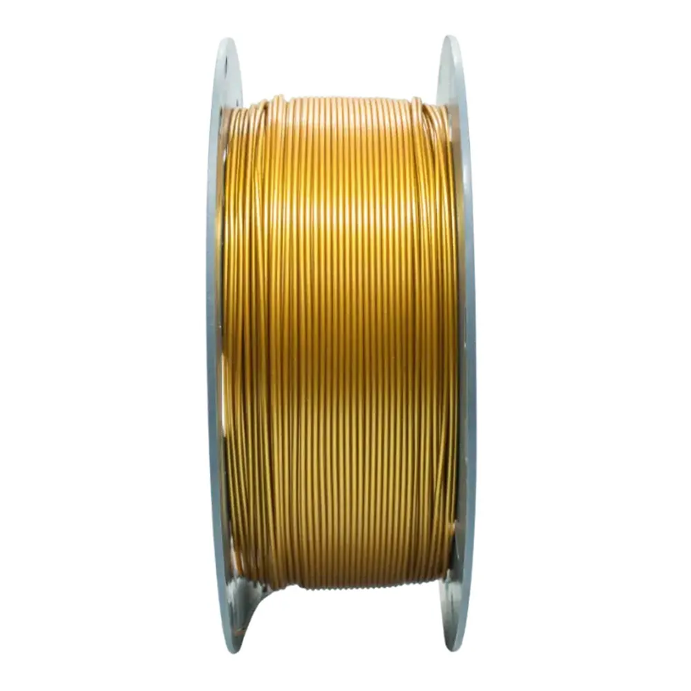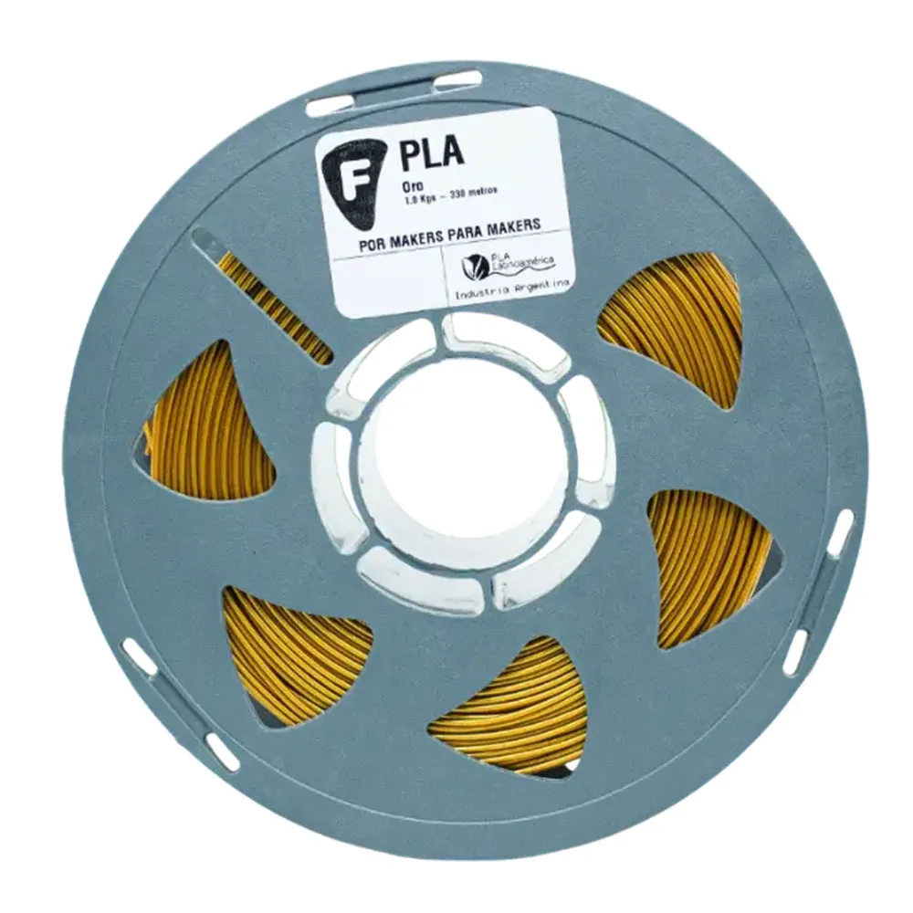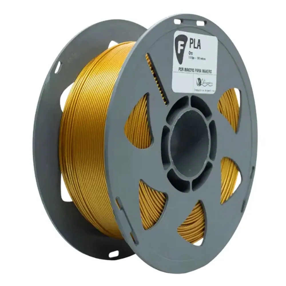 Filamento PLA Filar Oro 1KG con acabado brillante tipo metálico. Ideal para impresiones 3D de alta calidad, fácil de imprimir, baja deformación y excelente adherencia. Compatible con impresoras FDM. Perfecto para prototipos, piezas funcionales y decorativas.